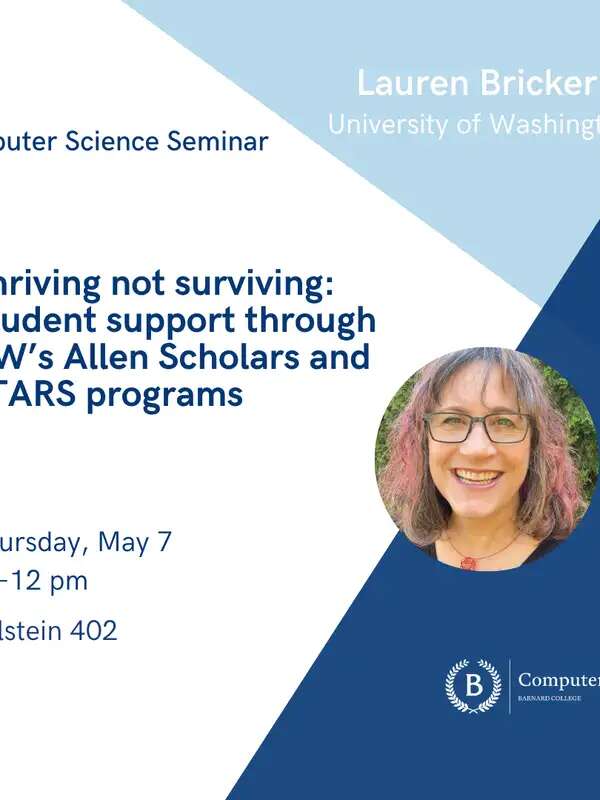 May 7 Computer Science Seminar: Lauren Bricker (University of Washington) May 7, 2026 | 11:00am - 12:00pm Milstein 402