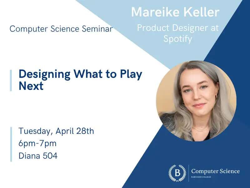 Apr 28 Computer Science Seminar: Mareike Keller (Product Designer at Spotify) April 28, 2026 | 6:00pm - 7:00pm