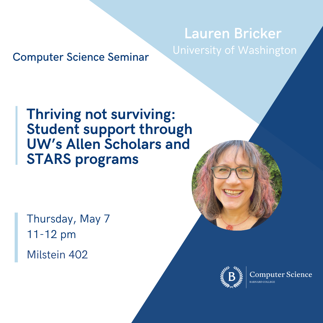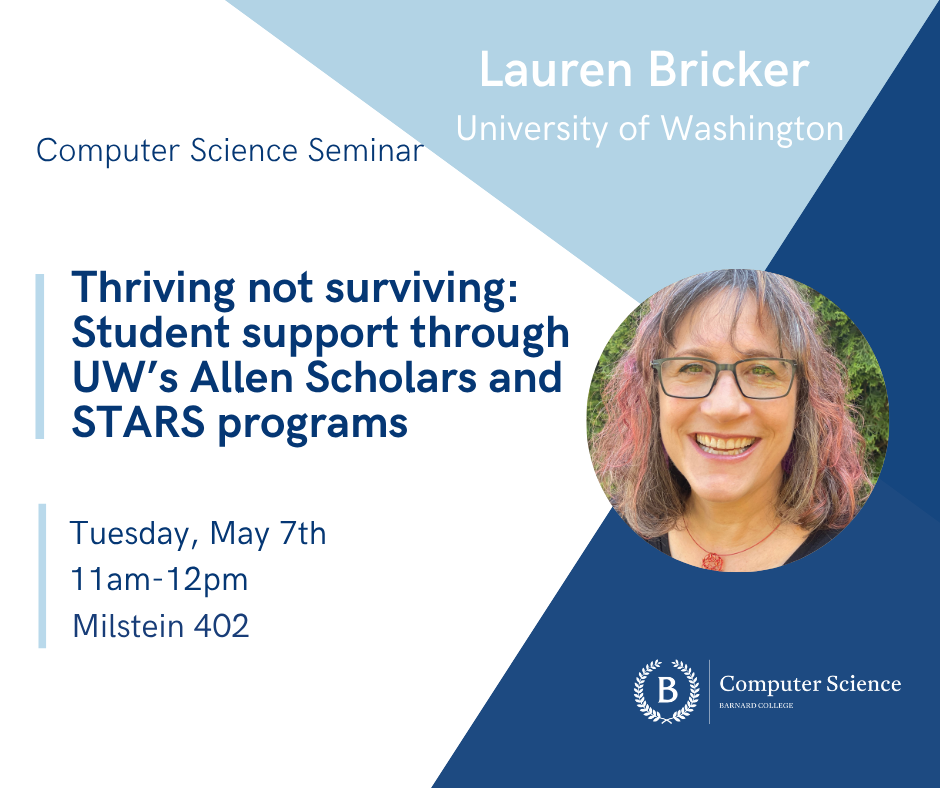 Dr. Lauren Bricker is in her ninth year as an Associate Teaching Professor in the Allen School at the University of Washington. She joined UW after teaching for ten years in middle and high school, and working in industry for many years prior to that. Her academic backgrounds include CS Education, Human Computer Interaction, Computer Graphics and Computational Fabrication. However, her "why" (her job fulfillment) has been providing support for students in the STARS and Allen Scholars programs - holistic first and second year college programs designed for students from first-generation and/or low-income backgrounds, or who are from the less well served schools in Washington state. She received the Allen School Undergraduate Teaching Award in 2025, was recognized as one of three GeekWire STEM Educators of the year in 2021, was featured as Geekwire’s “Geek of the Week'' in 2012, and was interviewed as part of Code.org’s Equity in Computer Science video. She also serves as the College/University representative to the Computer Science Teachers Association (CSTA) board of directors and the past president of the CSTA Washington chapter.