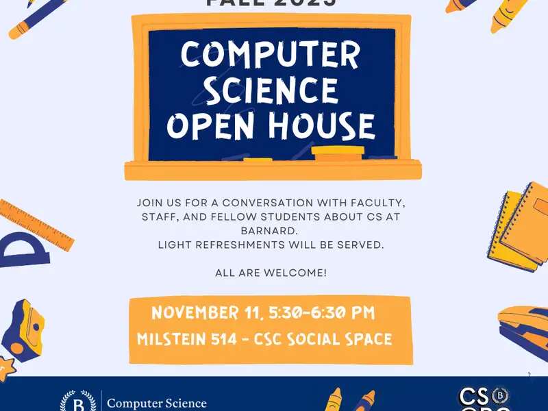 Nov 11 Computer Science Open House Fall 2025 November 11, 2025 | 5:30pm - 6:30pm Milstein 514 (CSC Social Space)